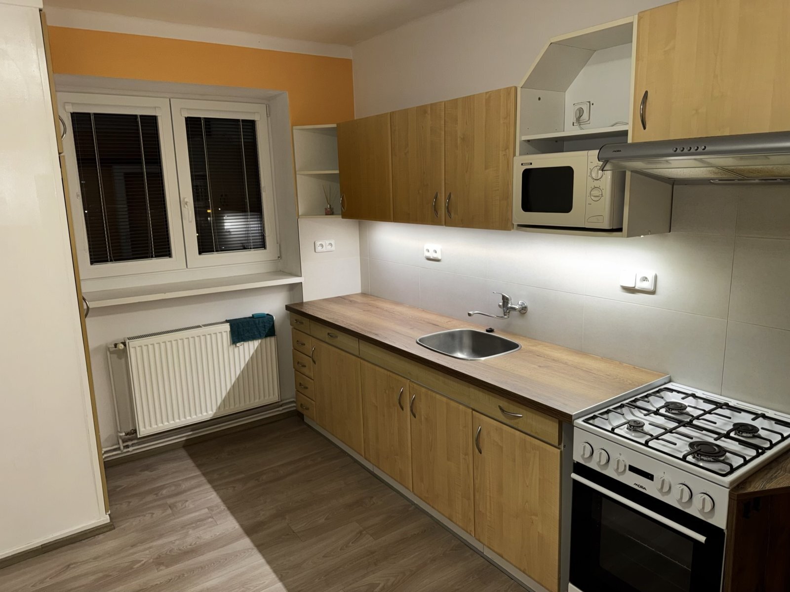 V bytě je kuchyňská linka, plynový sporák s el. troubou, mikrovlnka, skříň na potraviny. Pokoje jsou samostatné bez nábytku, na podlaze koberec. V koupelně je umyvadlo, vana, skříňka, WC. Ohřev vody je zajišťován el. bojlerem, otop bytu plynovým kotlem.
