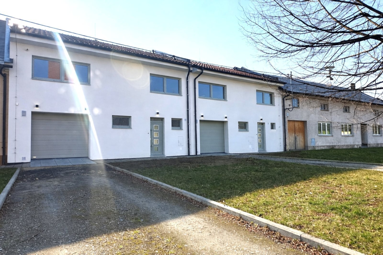 - možnost parkování v garáži (1) a na pozemku samostatného vjezdu před domem (2)