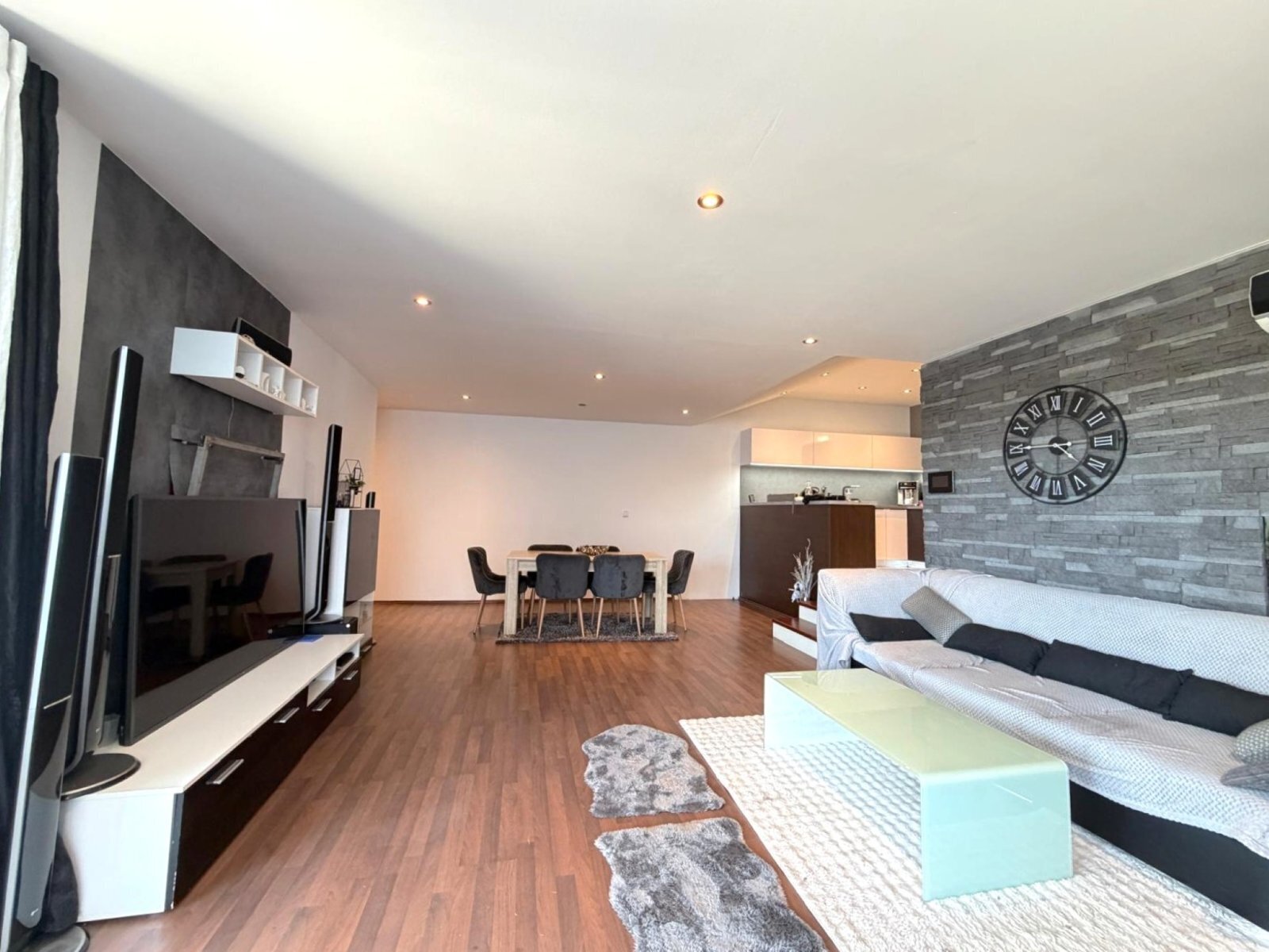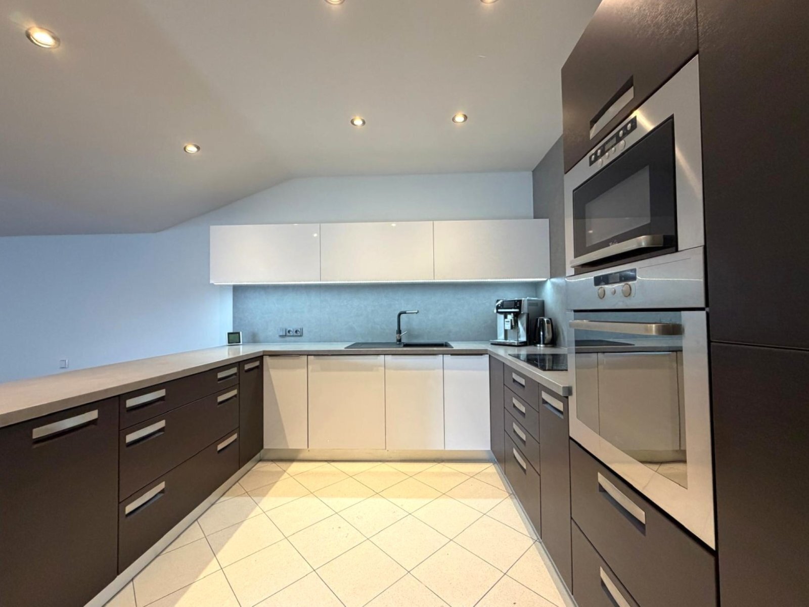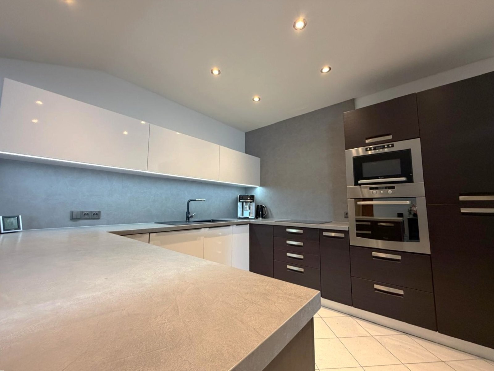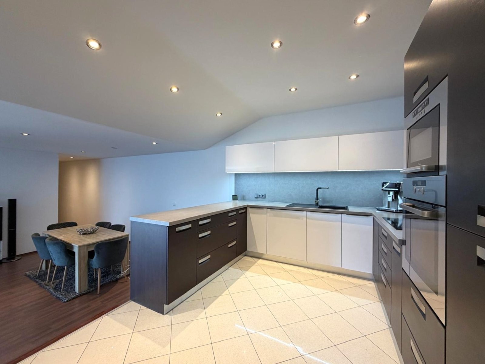 - kuchyň s vestavnými spotřebiči (varná deska, trouba, mikrovlnná trouba, myčka, digestoř)