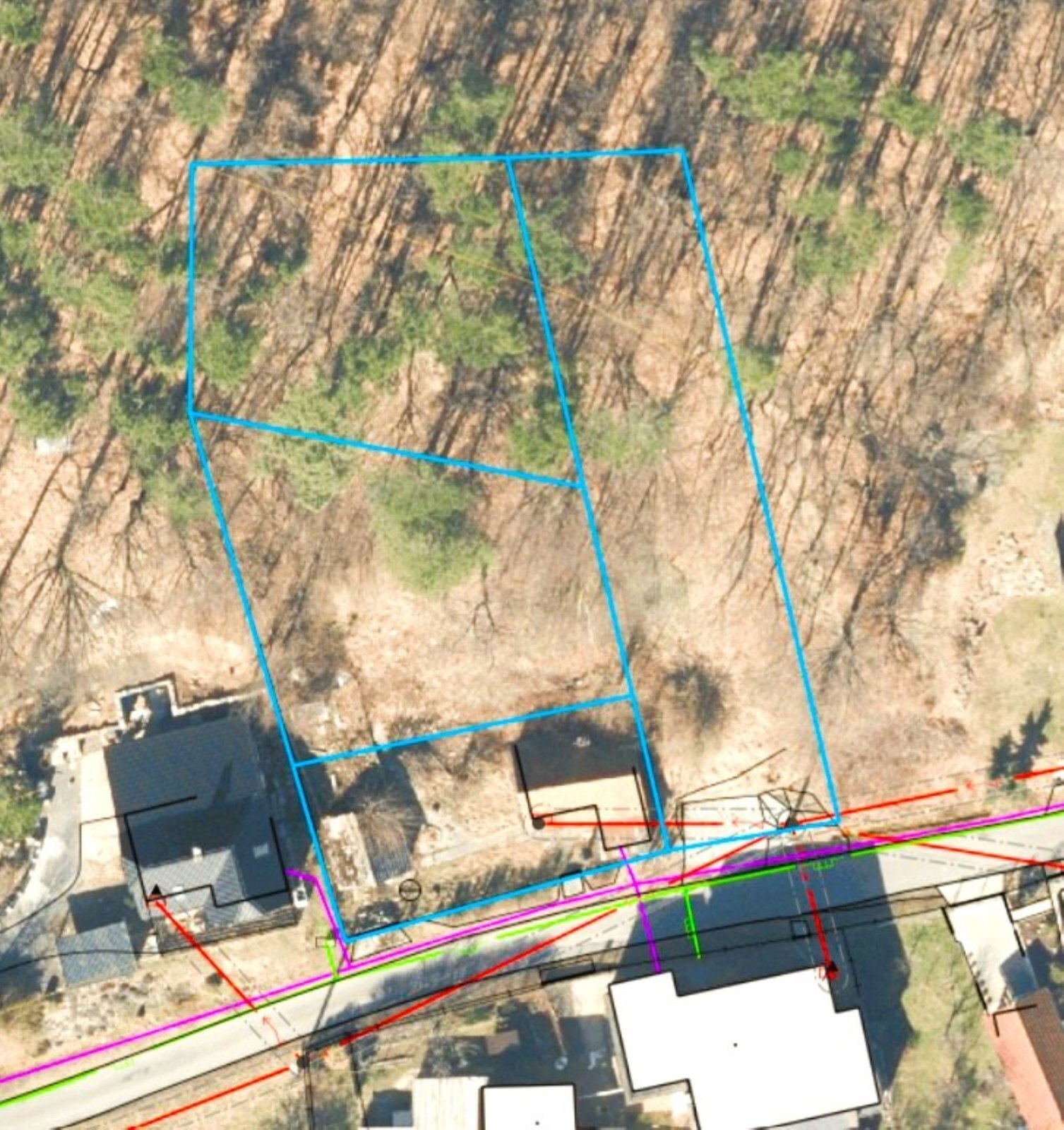 Na stavebním pozemku v současné době stojí stavba, lesní pozemek se dá z části využít pro parkovací stání. Současný majitel měl zájem o vybudování nového domu, v galerii jsou k dispozici vizualizace.
