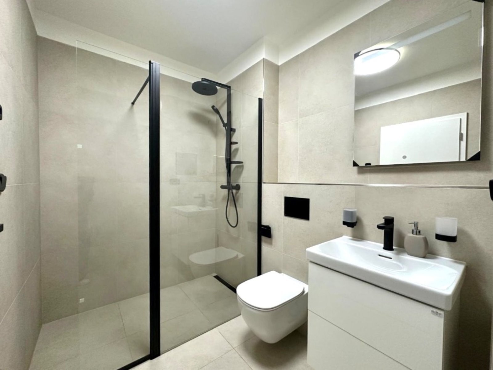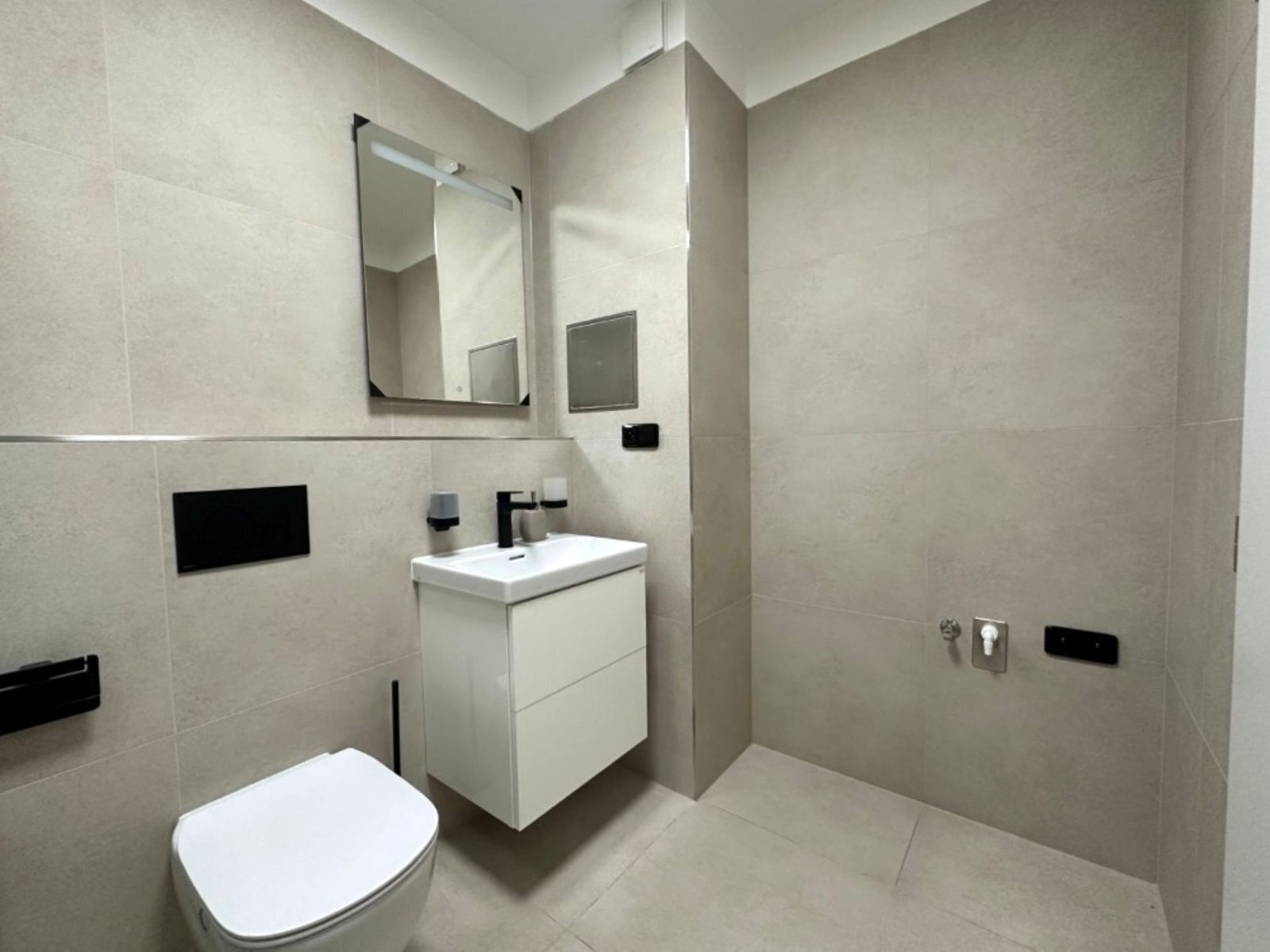 - koupelna se sprchovým koutem, umyvadlem se skříňkou a přípojkou na pračku