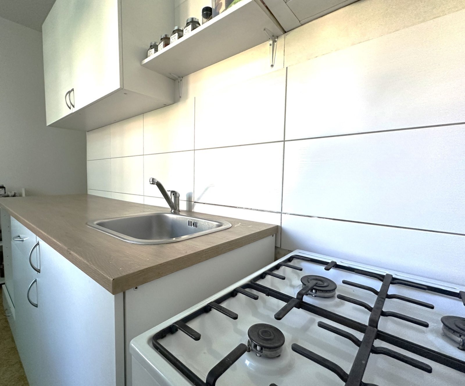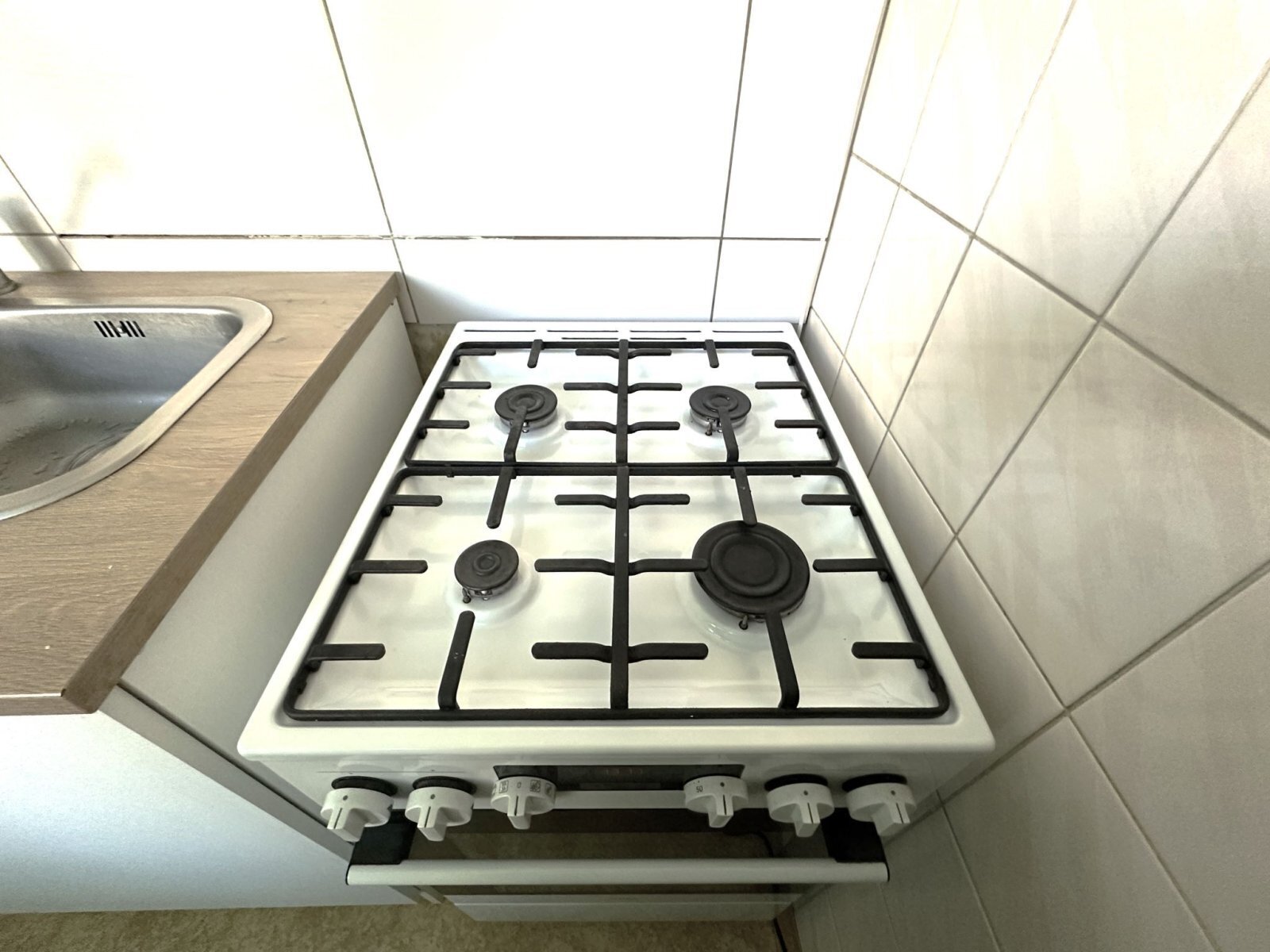 - kuchyňská linka (plynový sporák, elektrická trouba, prostor na myčku, lednice, pračka)