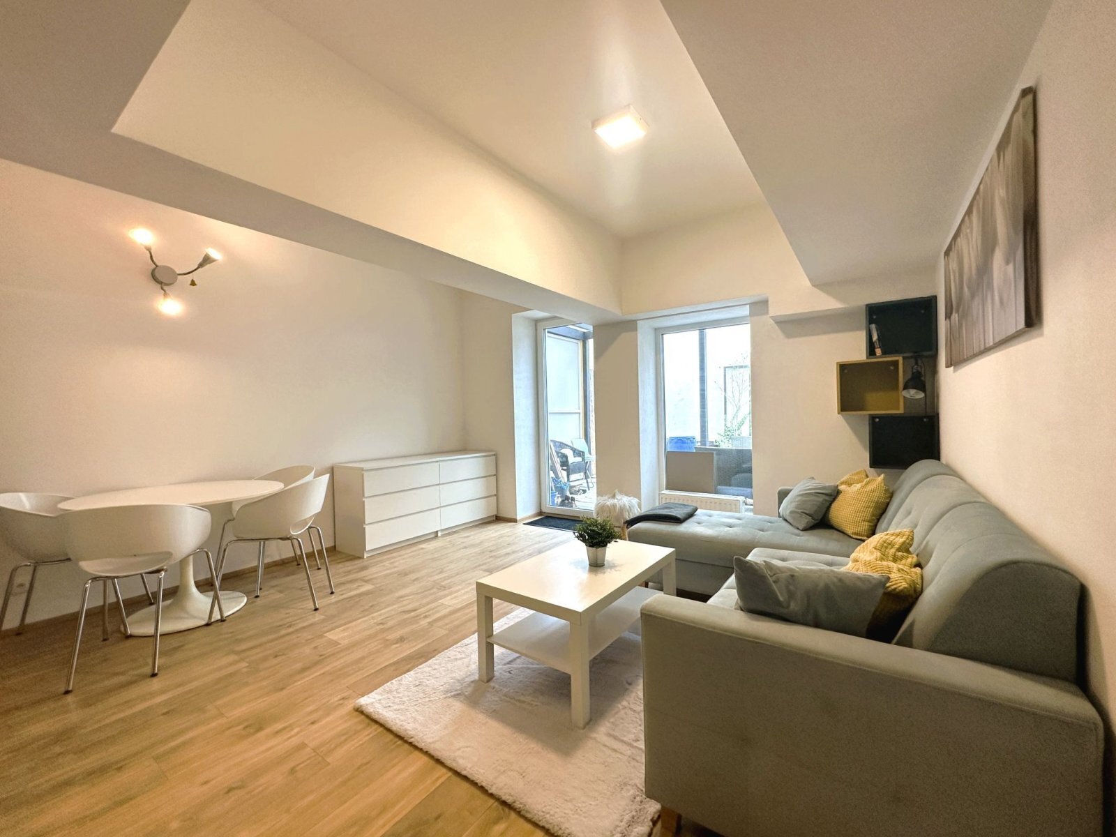 - jídelní stůl se čtyřmi židlemi, sedací souprava a konferenční stolek