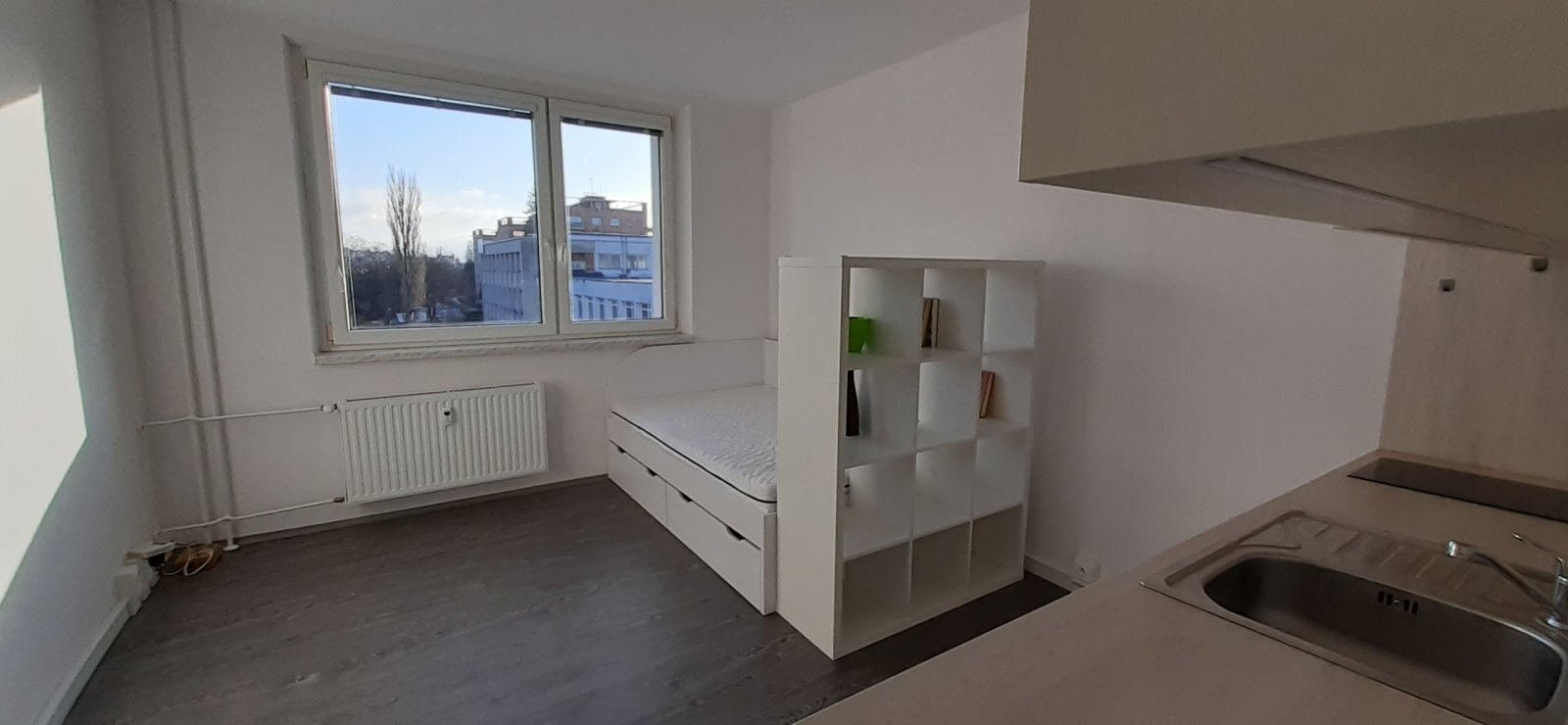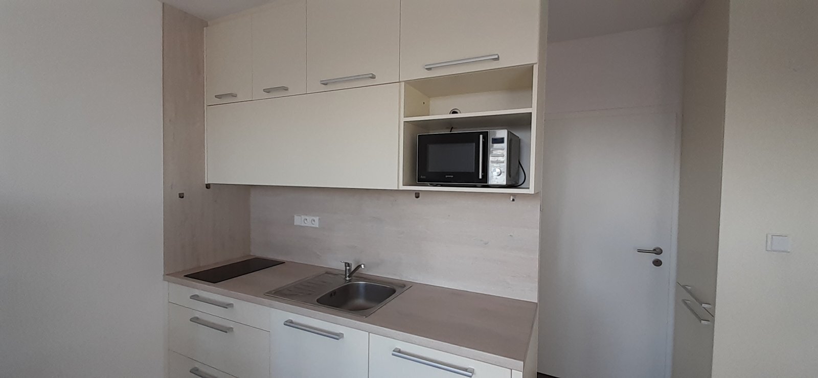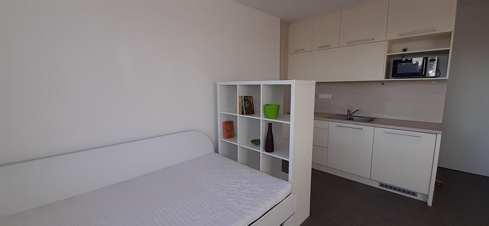 Nabízíme na pronájem pěkný byt 1+kk, rozloha 23 m, v novostavbě bytového domu. Byt se nachází ve 4.patře, orientace východ. V bytě je zařízená kuchyňská linka, varná deska, lednice, mikrovlnná trouba, postel. Na chodbě jsou vestavěné skříně s velkým úložným prostorem, připojení na internet. V koupelně je sprchový kout a WC, pračka. K bytu patří velký sklep. Byt je pěkný, moderně řešený a nabízí příjemné bydlení nedaleko centra krajského města, v blízkosti vlaku, autobusu i MHD. Parkoviště před domem. Doporučuji prohlídku.