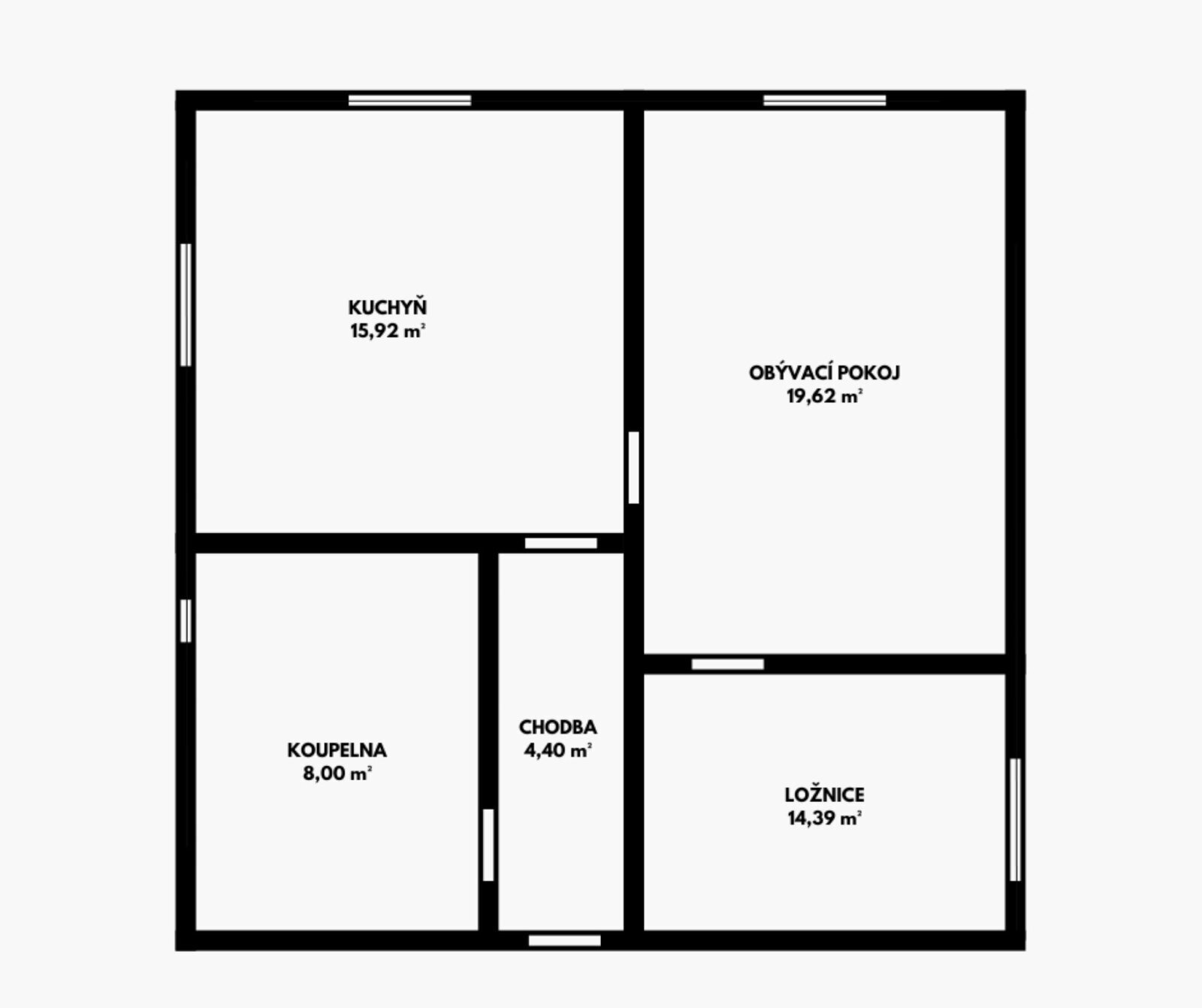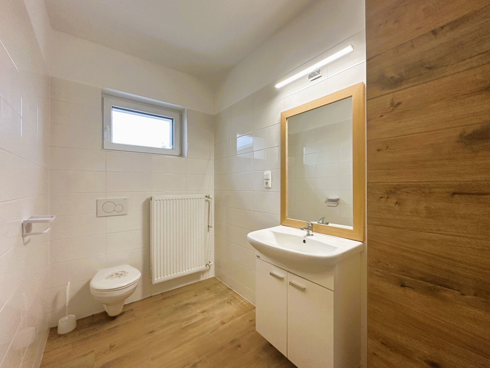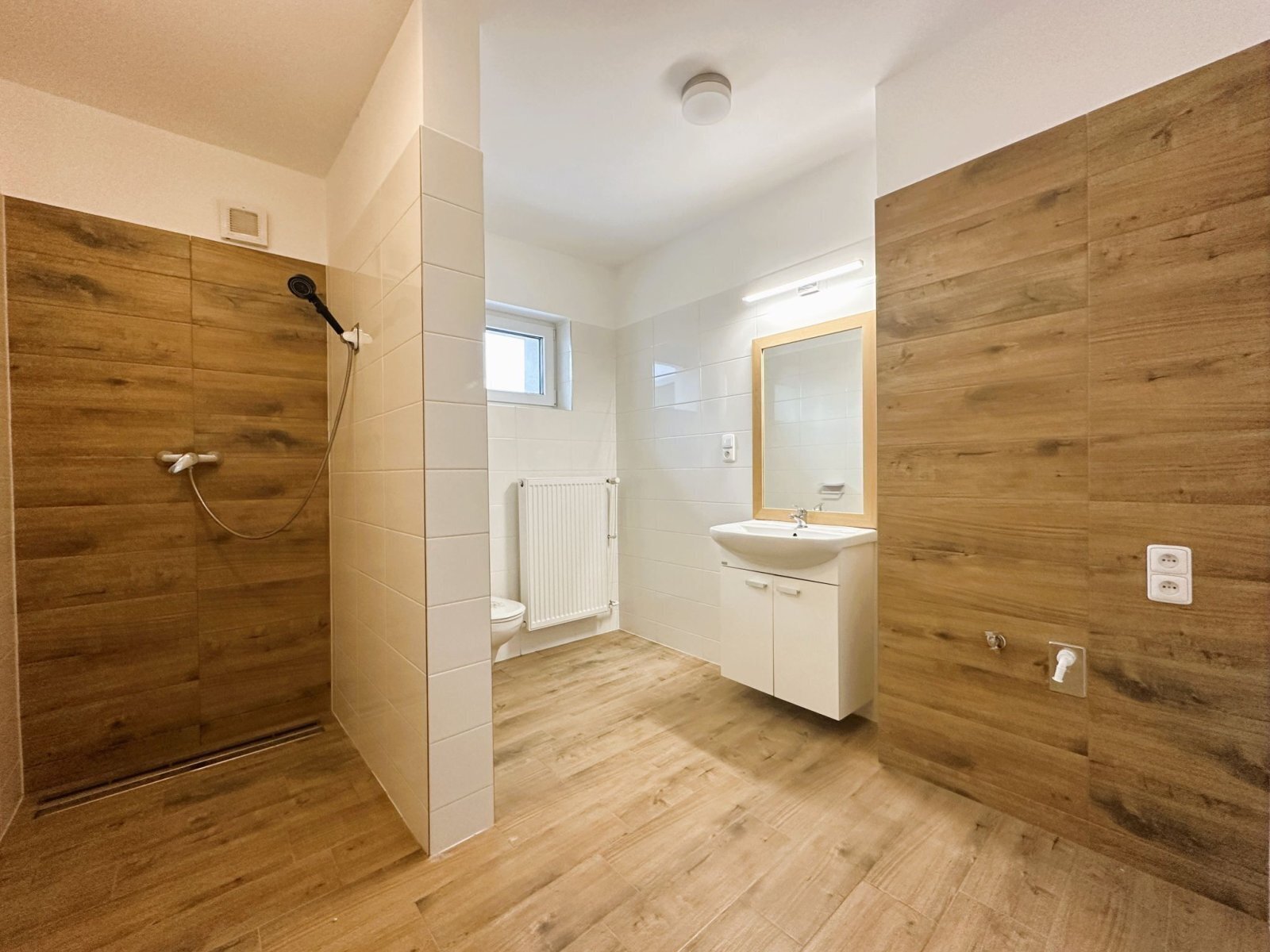 - koupelna s oknem: sprchový kout, umyvadlo se skříňkou, WC, přípojka na pračku a prostor pro sušičku