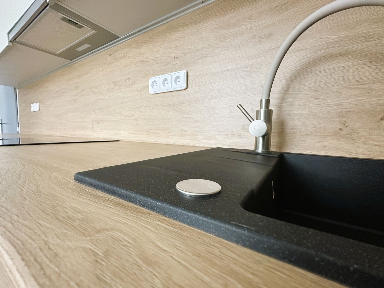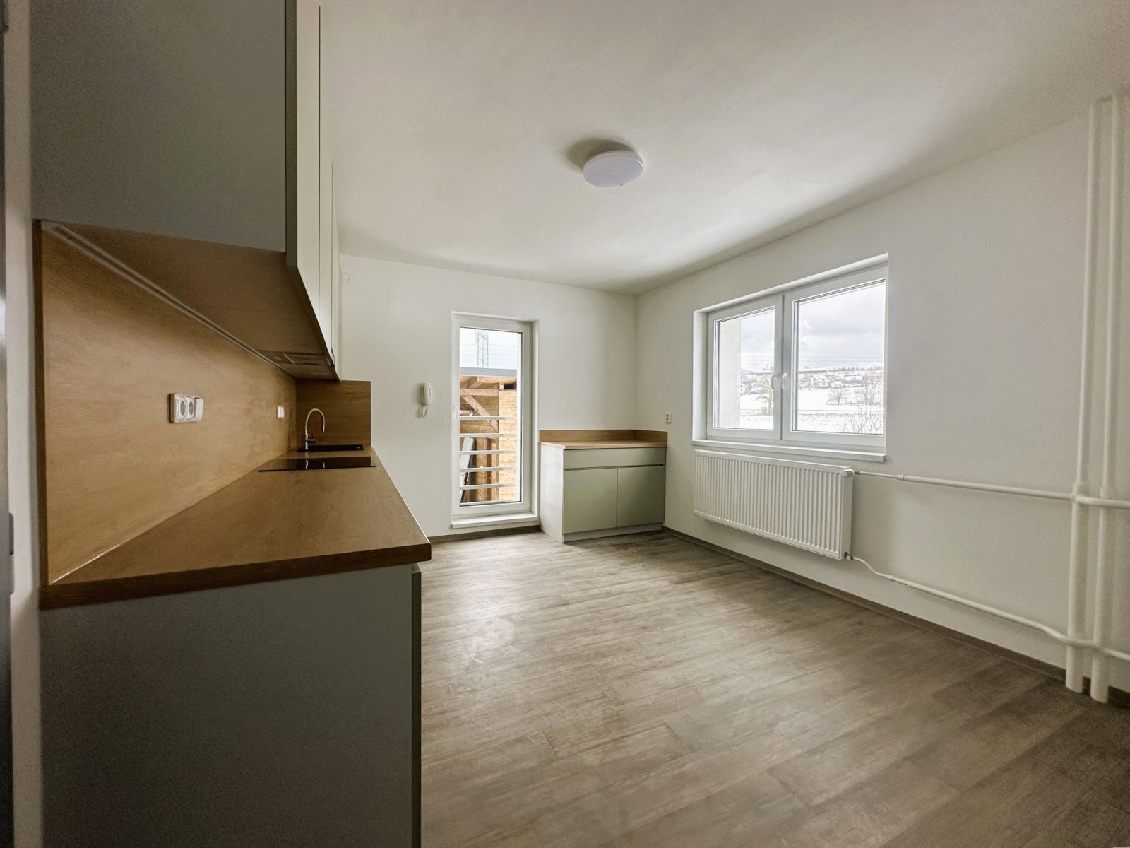 - kuchyň vybavená indukční varnou deskou, troubou a digestoří s místem pro jídelní stůl