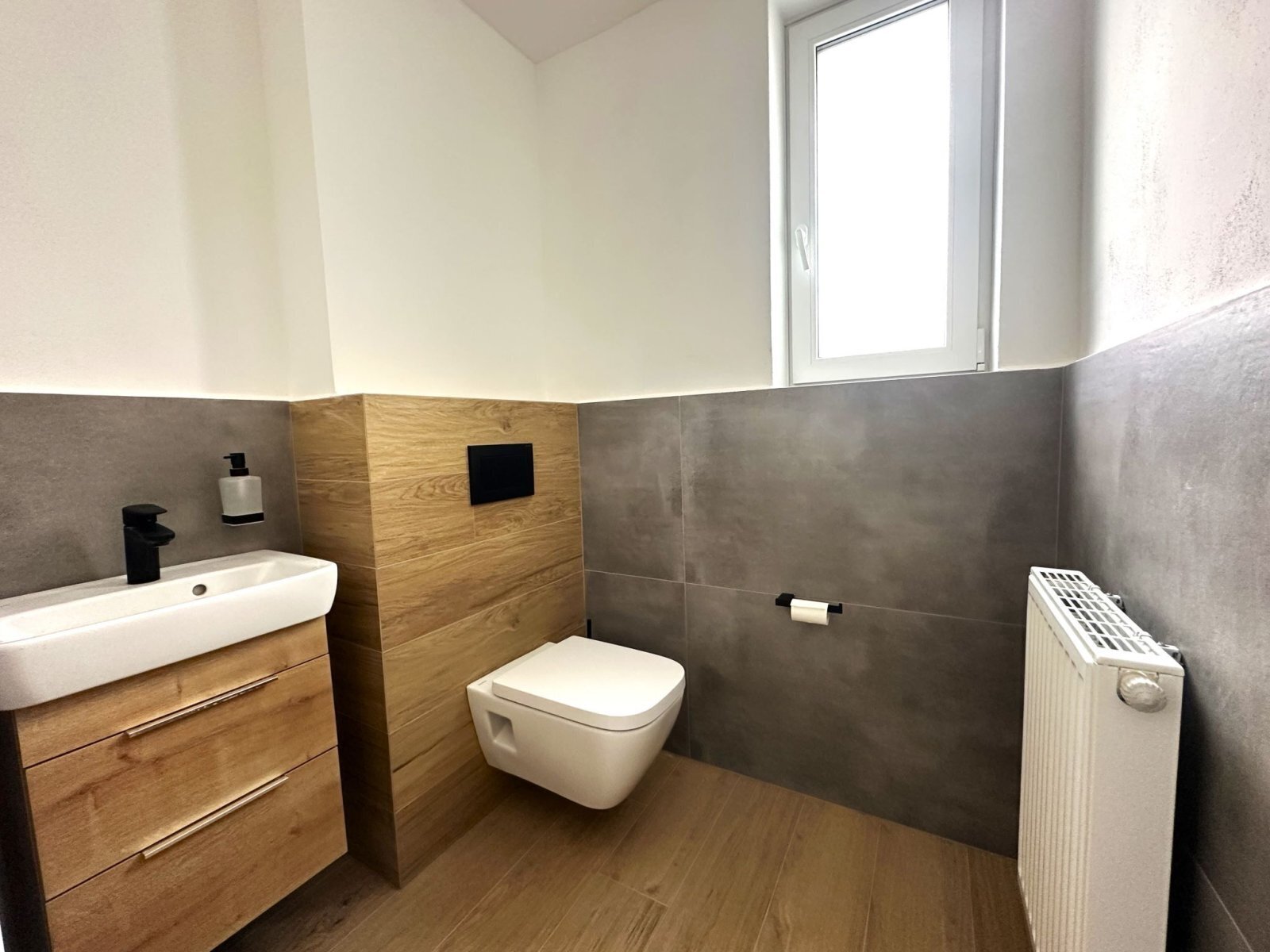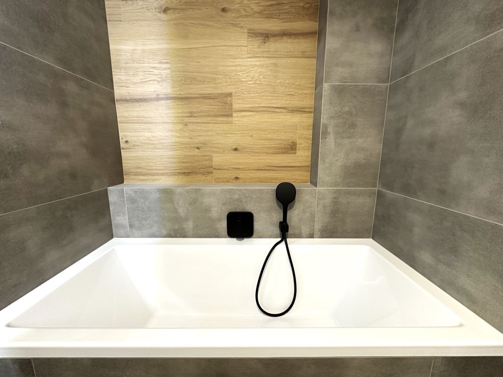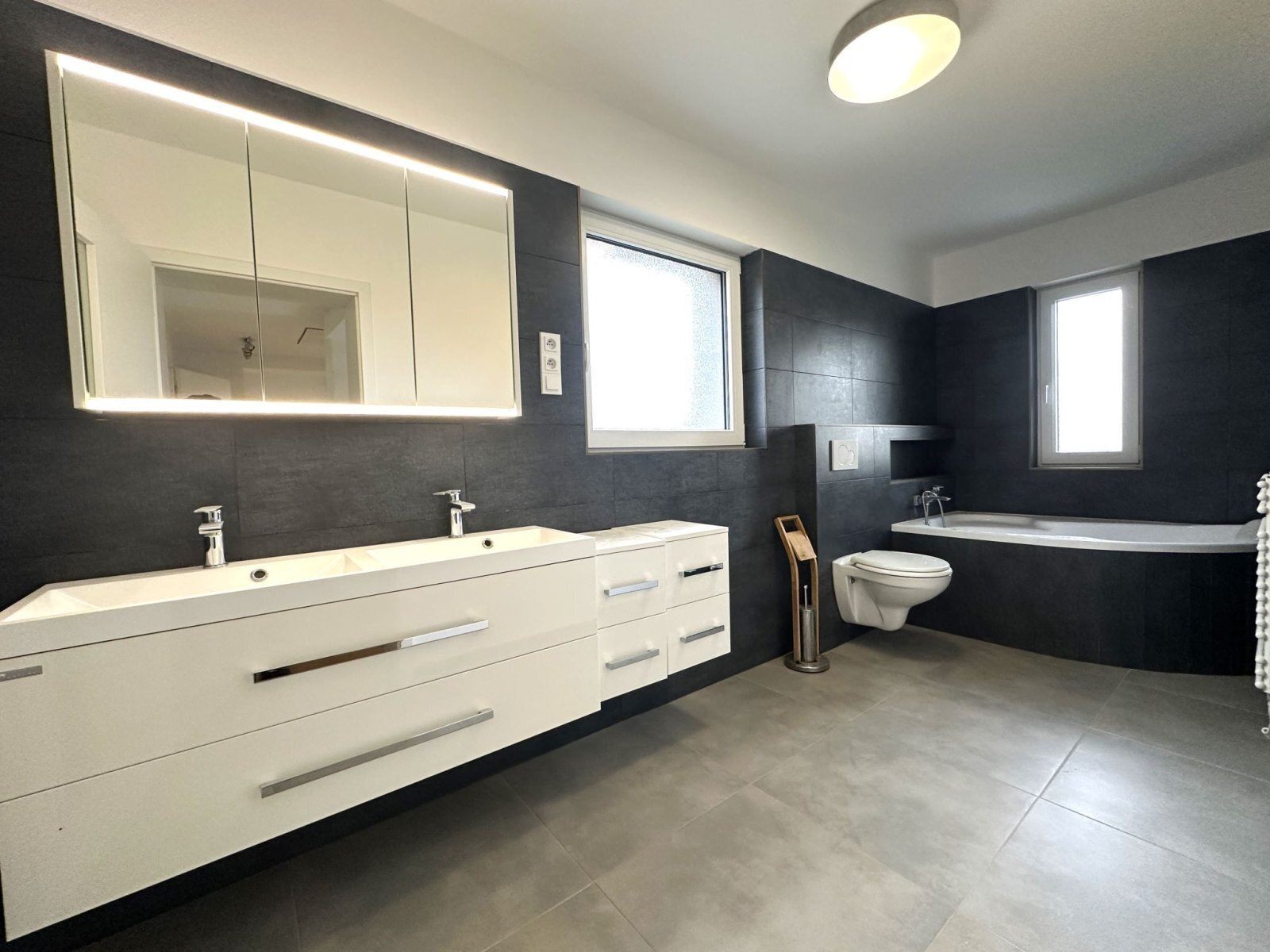 Velká koupelna s vanou a dvojitým umyvadlem, čtyři samostatné pokoje – ideální rozdělení na ložnici, dětské pokoje a případně další pracovnu.