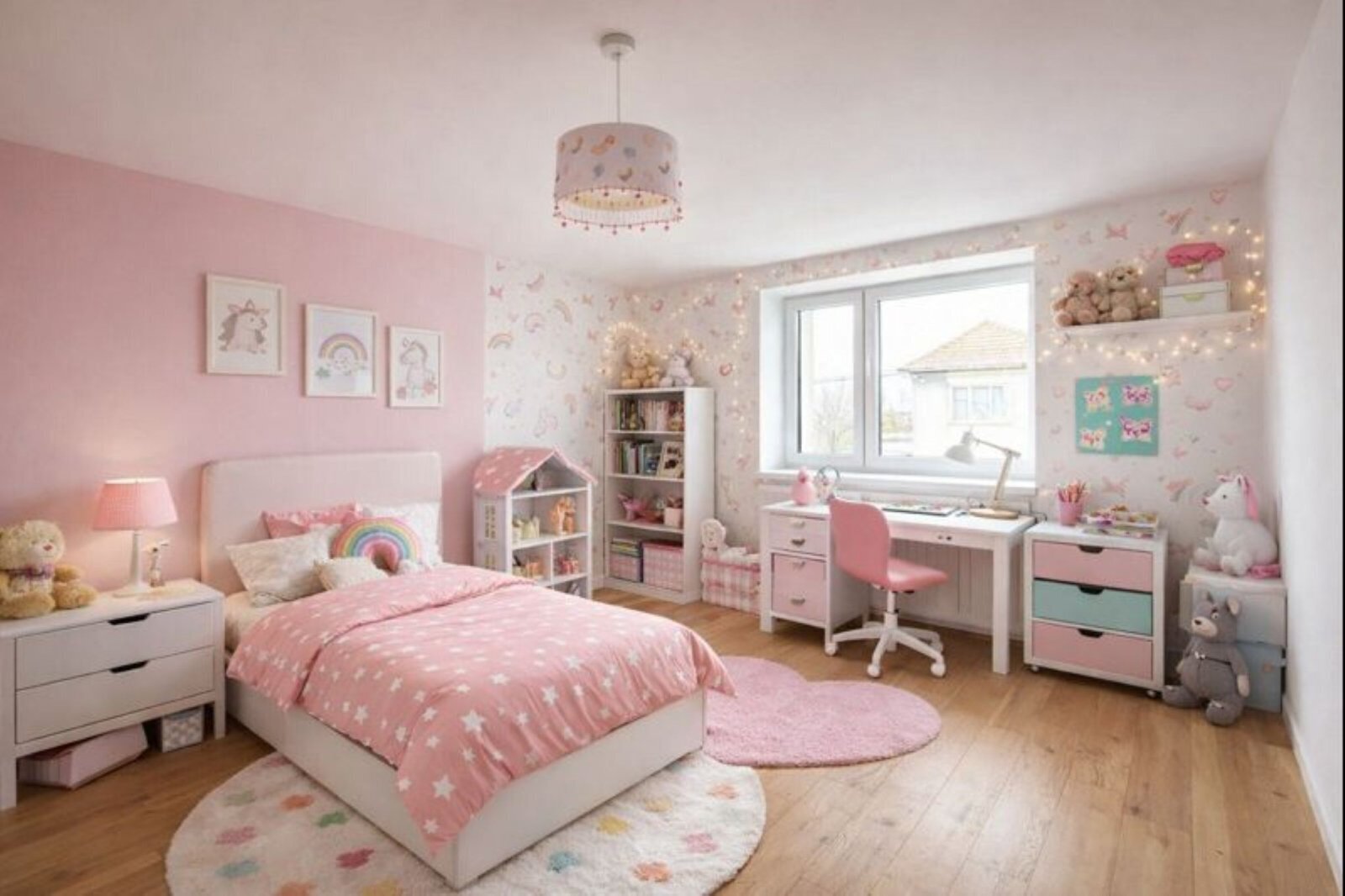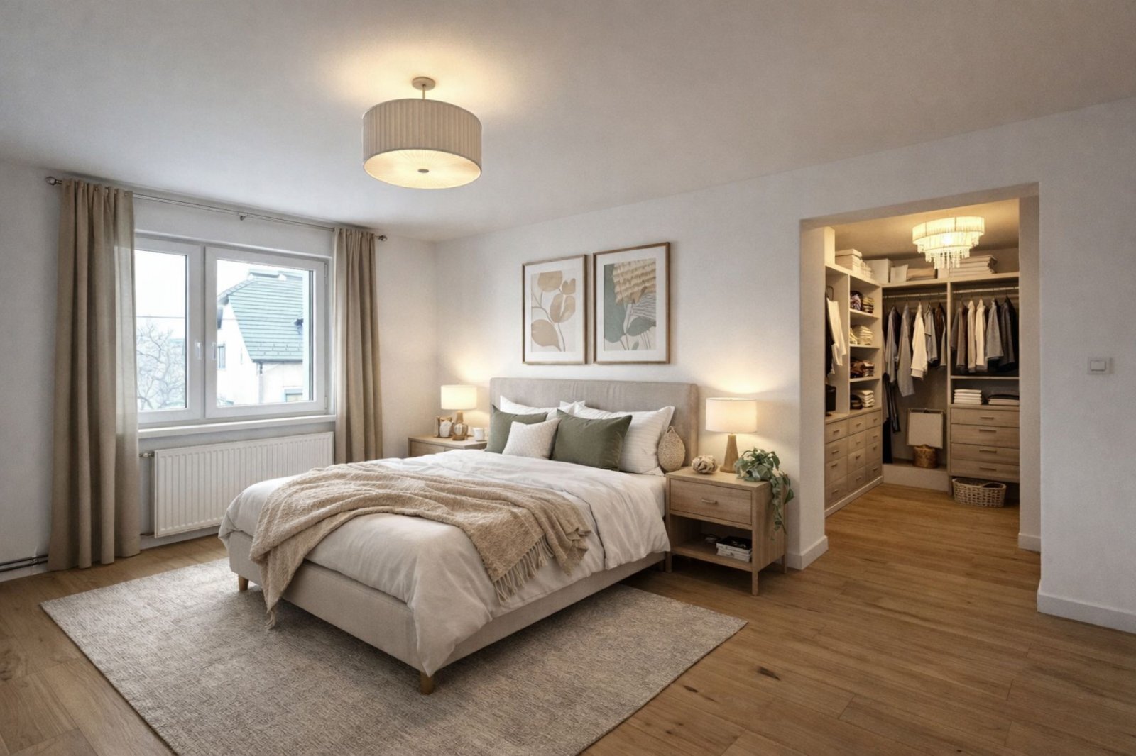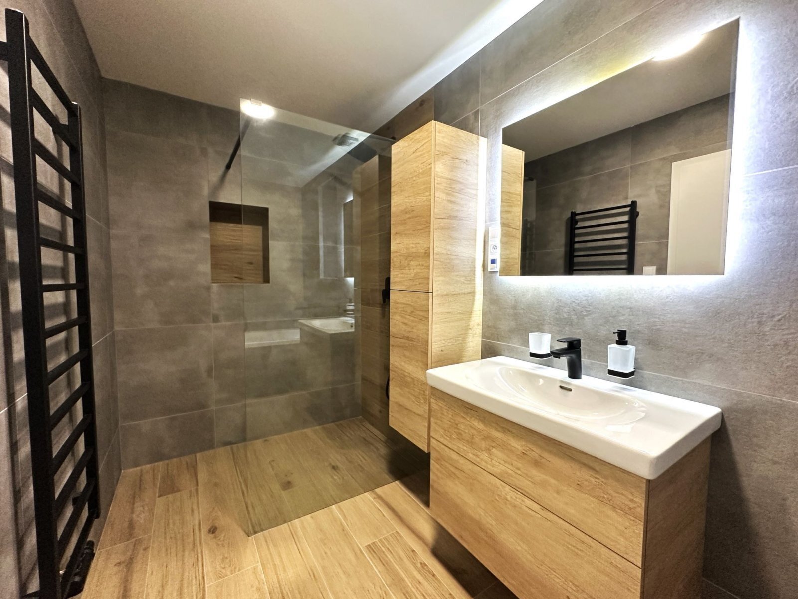Velká koupelna s vanou a dvojitým umyvadlem, čtyři samostatné pokoje – ideální rozdělení na ložnici, dětské pokoje a případně další pracovnu.